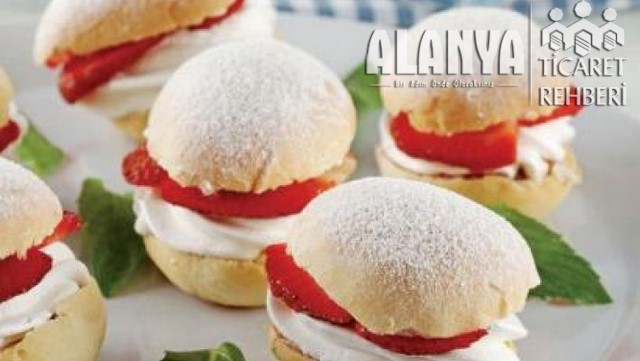 Dolgusu için kremayı bir kaba alıp mikser ile çırpın. Pudra şekeri ve vanilya özünü ekleyip karıştırın. Dolguyu hamurların yarısına paylaştırın. Çilekleri dilimleyip dolgunun üzerine dizin. Hamurların yarısıyla üzerlerini kapatın. Pudra şekeri serperek servis yapın
