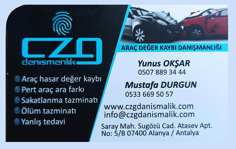Czg Danışmanlık Sakatlanma Tazminatı Ve Ölüm TazminatıAlanya- 11/10/2024 tarihinde eklendi. |
