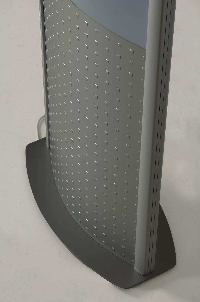 Zarif görünümlü Dekoratif Totemin alt kısmı galvanizli polistirenle kaplanmıştır. Üst kısmındaki görsel alan, posterinizi kolaylıkla değiştirmenize imkan verir. Yalnızca ön profili açmanız yeterlidir. Çift taraflı kullanılabilir. Gövdede menteşeli kapak, mıknatıslı koruyucu ve plastik mandallar mevcuttur.